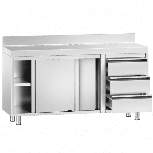 Edelstahl Arbeitsschrank PREMIUM 3 Schubladen Links & Aufkantung