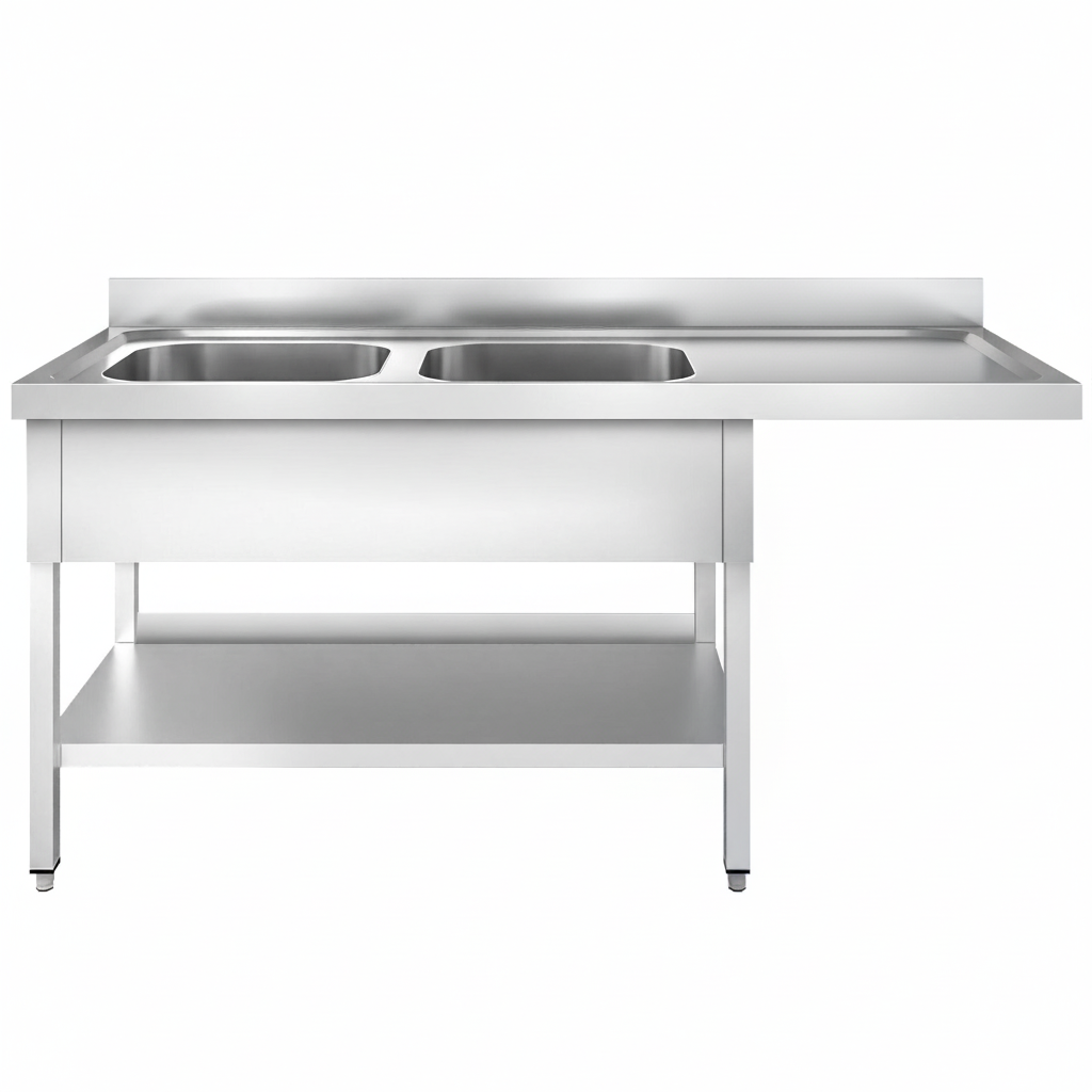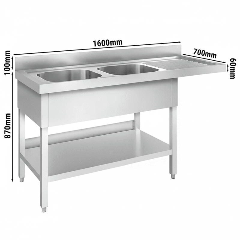 Spülmaschinen-Spültisch mit 2 Becken rechts