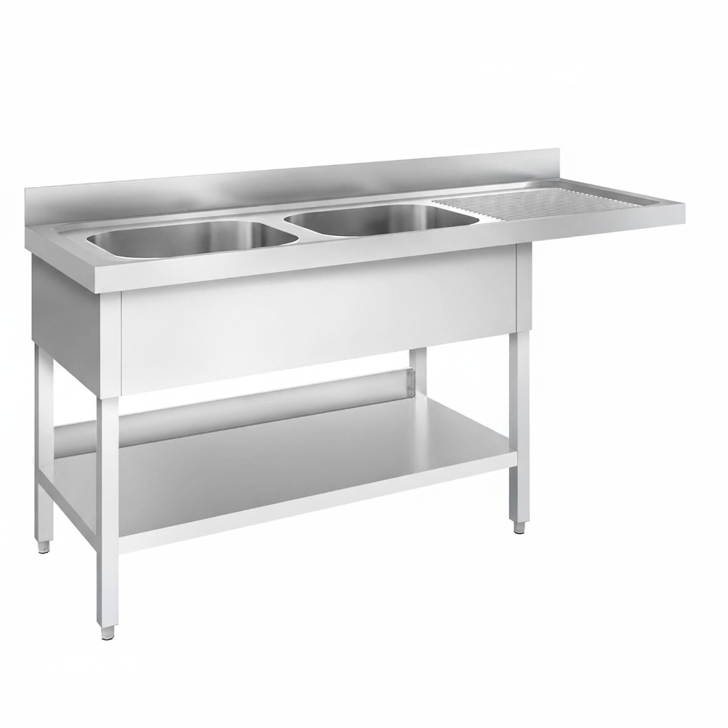 Spülmaschinen-Spültisch mit 2 Becken rechts Ursprünglicher Preis war: CHF 1'100.00Aktueller Preis ist: CHF 880.00.
